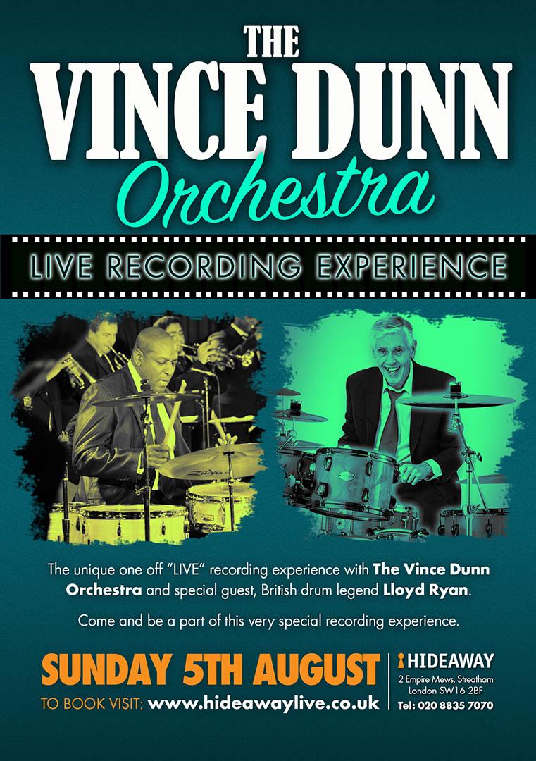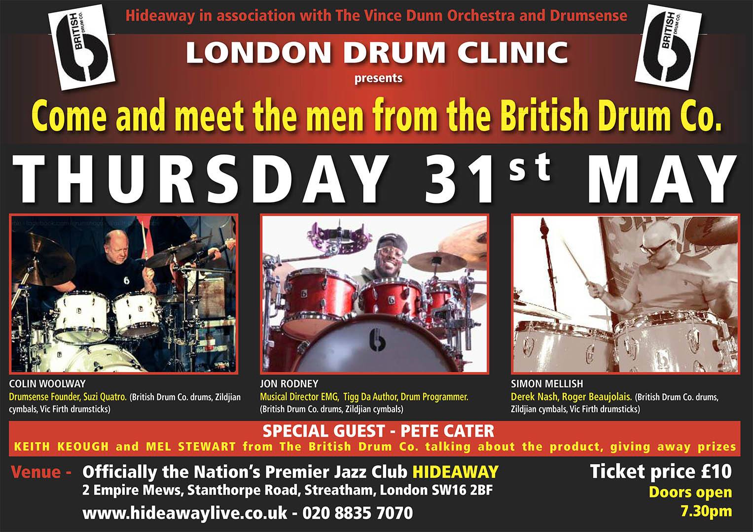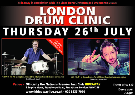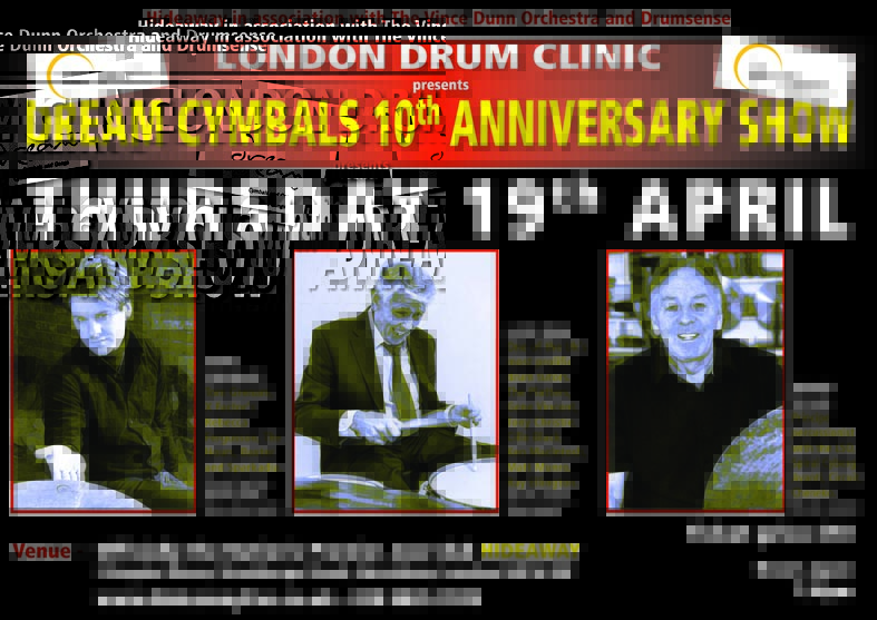 Hideaway in association with The Vince Dunn Orchestra and Drumsense presents The London Drum Clinic - Dream Cymbals 10th Anniversary Show Featuring Adam Gammage, Lloyd Ryan and Trevor Taylor.