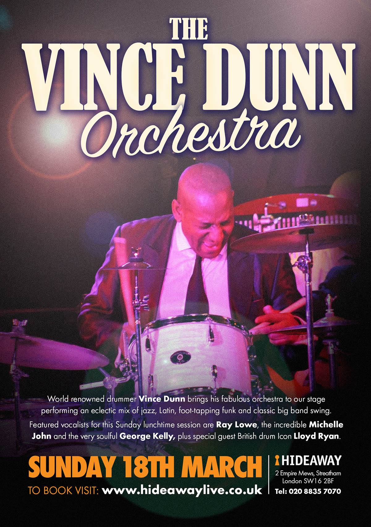 Featured vocalists for the show are Ray Lowe, the incredible Michelle John and the very soulful George Kelly, plus special guest British drum icon Lloyd Ryan.