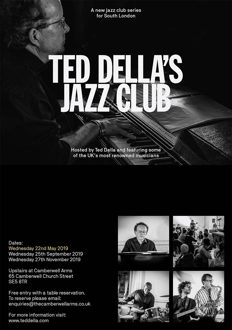 Ted Della’s Jazz Club is an evening of live music in Camberwell, South London Inspired by the jazz clubs of New York you can expect an evening of fantastic food, drink and live music The evening will see the Ted Della Trio joined by some of the UK’s most renowned musicians Entry is free with a reservation. To make a reservation please email Camberwell Arms