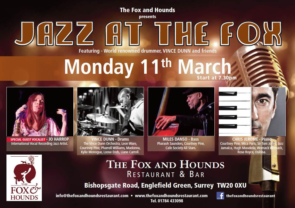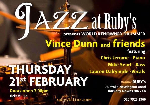 ”Up close and personal with World Renowned Drummer Vince Dunn & his band" World renowned drummer Vince Dunn leads his critically acclaimed soul jazz outfit ‘The Medicine Band’ with a stellar line-up of first-class musicians. Individually they have played on some of the world’s most prestigious stages alongside some of the biggest names in the music industry, collectively they have continuously delivered unparalleled live performances