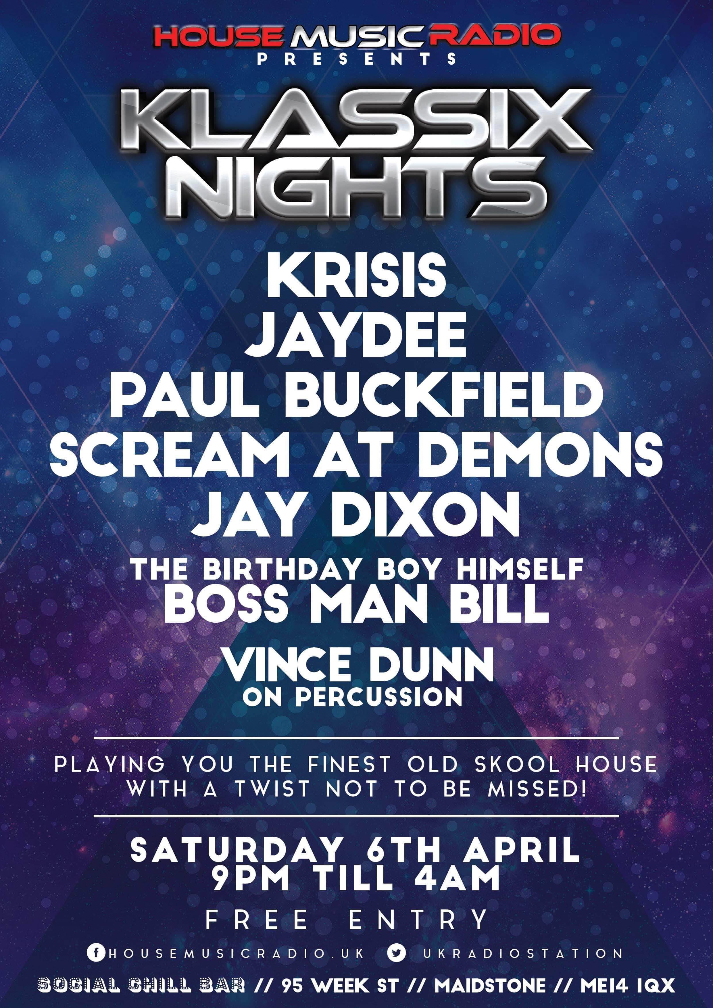 Klassix Nights feat Vince Dunn on percussion. Playing you the finest old skool house with a twist not to be missed!